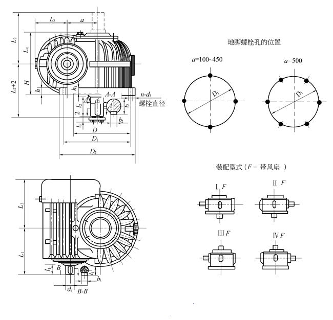 | 型號\尺寸 | a | D | D1 | D2 | L3 | L4 | L5 | h | h1 | H | i≤12.5 | ||||